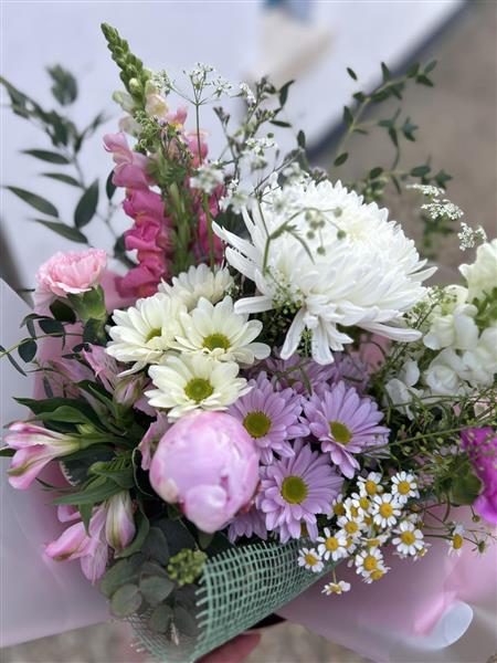This fresh flower bouquet we have created with our own loving hands showcases natural charm in every stem. Order bouquets and arrangements online with ease, telephone or visit our shop in person if you are local, where every flower is crafted with attention to detail.