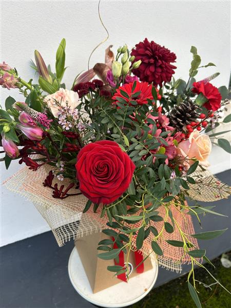 Flower choices and colours will be at market discretion but we promise the best of what’s in season. Photo for illustration only. Christmas themed Fresh Flowers will be in stock from Wednesday 10th Dec to Wed 24th Dec and this product will only be available for delivery or collection between these dates.