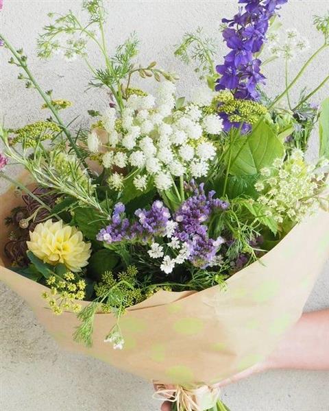 An exciting collaborative floristry workshop using the freshest locally grown seasonal flowers from Under the Damson Tree flower farm in Rathfriland and step by step instruction with Ditsy Floral Design to develop the skill of creating a hand-tied bouquet. Before wrapping it with pretty Kraft paper.