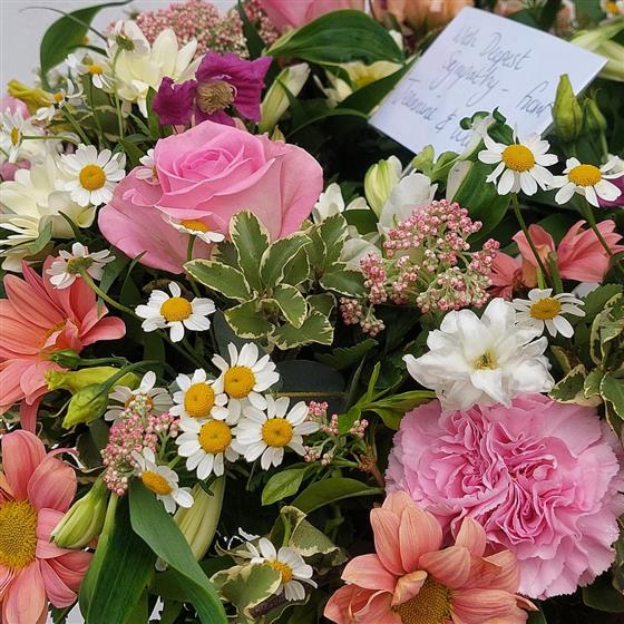The freshest seasonal florist’s choice flowers will be used but please let us know any colour preference or if it’s for a ladies or gents grave.